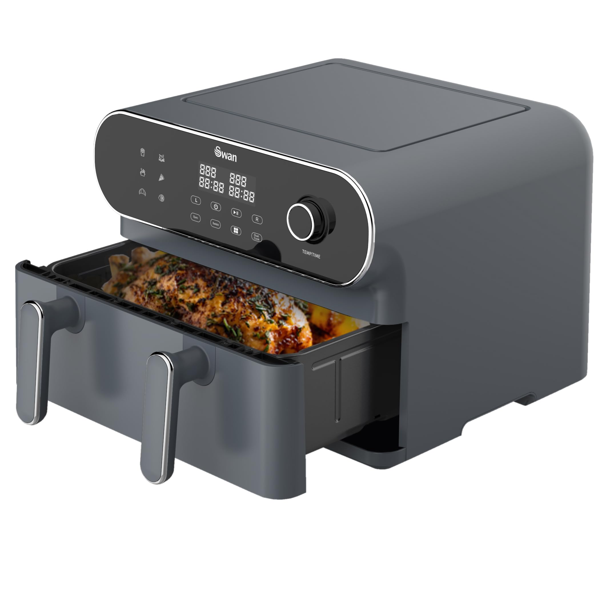 - Single Basket (11L): Remove the divider to use the full 11-litre capacity. Ideal for larger items like a whole chicken or turkey.